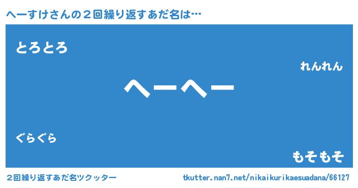 | 意味不明あだ名 | 『ペロリンへーすけ』『自称へーすけ』 |