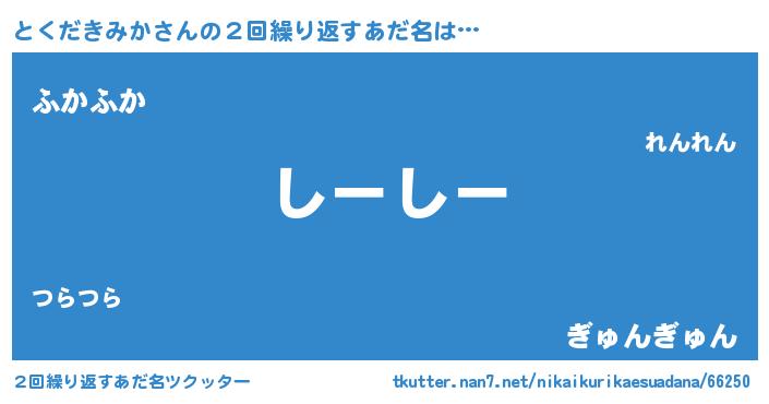 | 意味不明あだ名 | 『住所不定無職とくだきみか(79歳)』 |