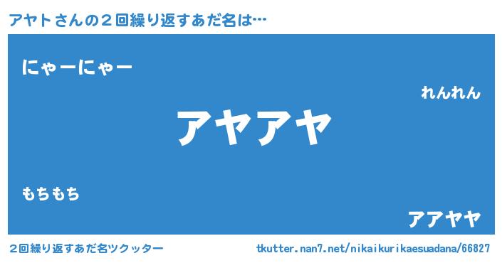 | ヒーロー風カッコイイあだ名 | 『スーパーアヤト』『銀牙騎士アヤ』 |