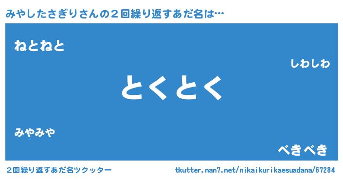 | 意味不明あだ名 | 『とにかく怪しいみやしたさぎり』 |