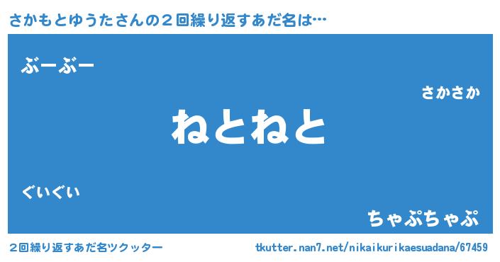 | 男性向けラノベタイトル風あだ名 | 『さかもとゆうたの嫁は女の子じゃないと思った?』 |