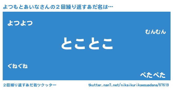 | 意味不明あだ名 | 『ペロリンよつもとあいな』 |