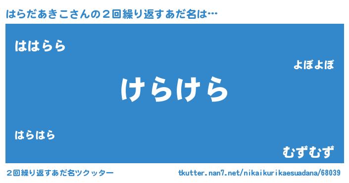 | ヘコむあだ名 | 『はらだあきこ(苦笑)』『豆乳』 |