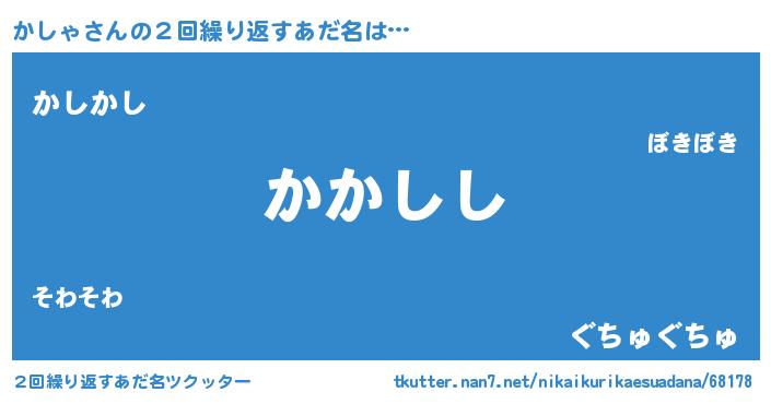 | 意味不明あだ名 | 『かしゃフォーエバー』『ペロリンかしゃ』 |