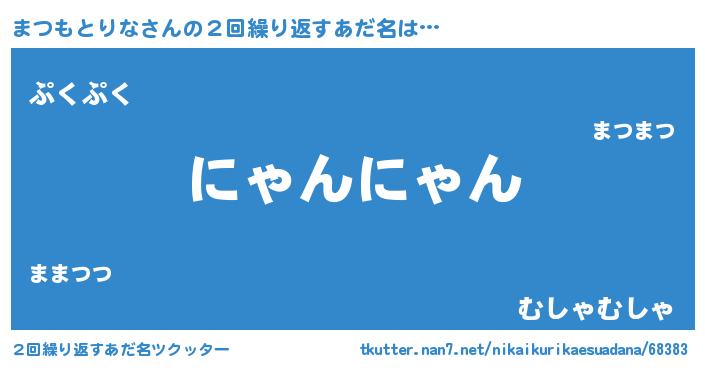 | 欧米人風あだ名 | 『ウサインまつもとりな』 |