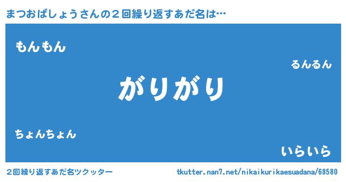 | ヘコむあだ名 | 『まつおばしょう(苦笑)』『まつを』 |