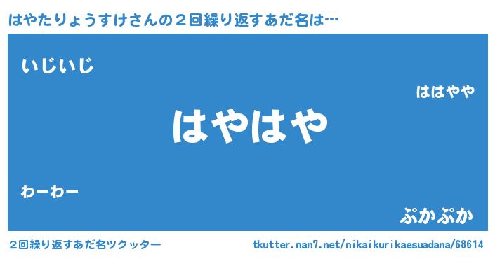 | ポケモン風あだ名 | 『ハヤチュウ』『ヒハヤタリョウスケ』 |