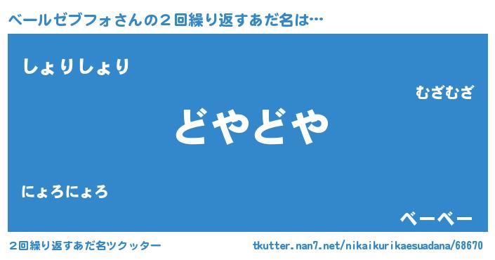 | 意味不明あだ名 | 『住所不定無職ベールゼブフォ(89歳)』 |