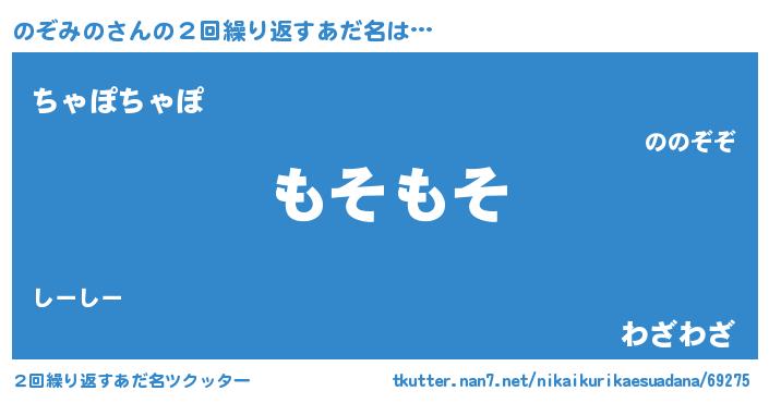 | 男性向けラノベタイトル風あだ名 | 『Re:のぞみのから始める異世界生活』 |