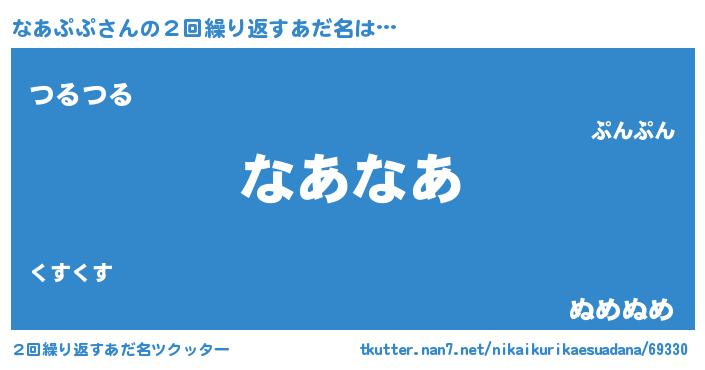 | 意味不明あだ名 | 『ペロリンなあぷぷ』『永久保存なあぷぷ』 |