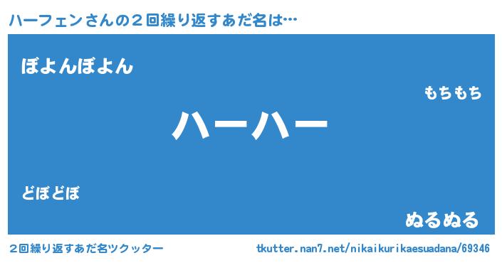 | 意味不明あだ名 | 『ペロリンハーフェン』『自称ハーフェン』 |