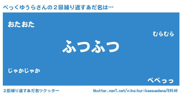 | 男性向けラノベタイトル風あだ名 | 『おまえをオタクにしてやるから、俺をべっくゆうらにしてくれ! 』 |