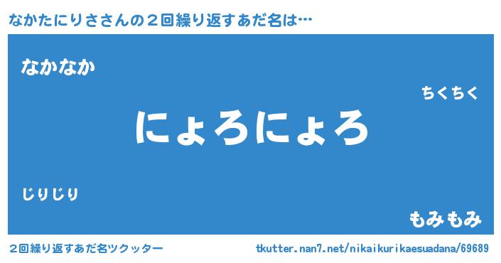 | 男性向けラノベタイトル風あだ名 | 『なかたにりさの嫁は女の子じゃないと思った?』 |