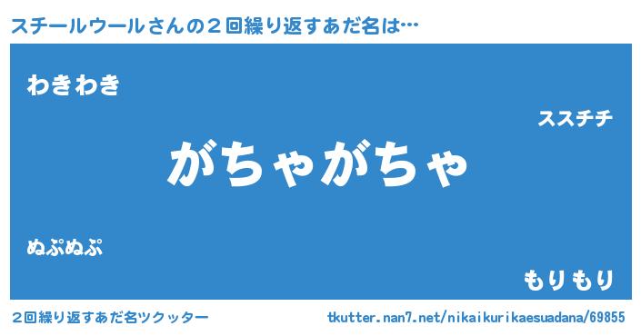 | ヒーロー風カッコイイあだ名 | 『ネオスチールウール』『幻影騎士スチ』 |