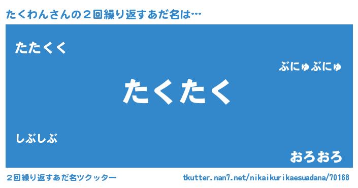 | ファンタジー風あだ名 | 『タクフェル』『エターナルタクワンー』 |