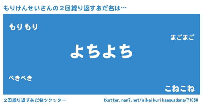 | ヘコむあだ名 | 『もりにゅー』『もりけんせい(小並感)』 |