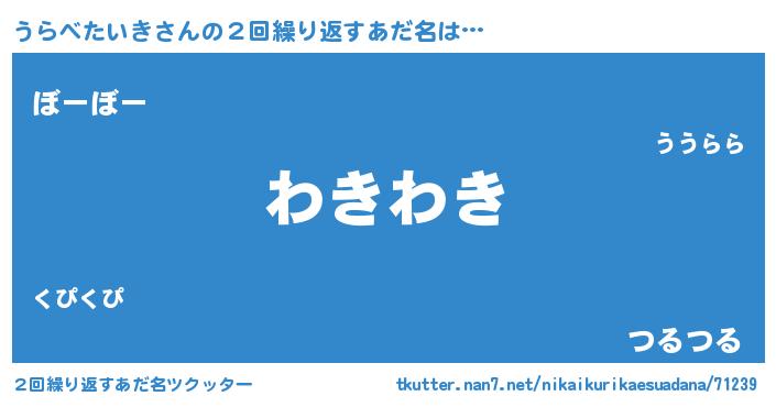| 男性向けラノベタイトル風あだ名 | 『転生したらうらべたいきだった件』 |
