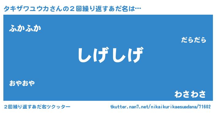 | 意味不明あだ名 | 『住所不定無職タキザワユウカ(53歳)』 |