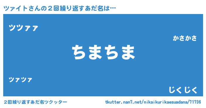 | 自動車の名前っぽいあだ名 | 『フェツーァ』『ツクア』『ツウディ』 |