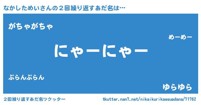 | 男性向けラノベタイトル風あだ名 | 『なかしためいの嫁は女の子じゃないと思った?』 |