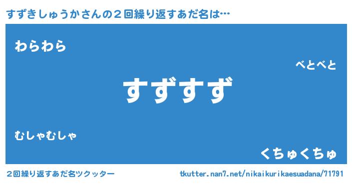 | ヘコむあだ名 | 『すずにー』『すずきしゅうか(爆)』 |