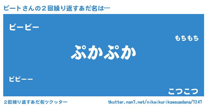 | ヘコむあだ名 | 『ビーにゅー』『ビート(爆)』 |