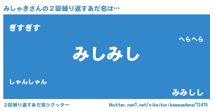 | 男性向けラノベタイトル風あだ名 | 『みしゃきの憂鬱』『魔弾の王とみしゃき』 |