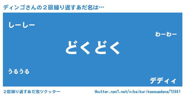 | 意味不明あだ名 | 『住所不定無職ディンゴ(95歳)』 |