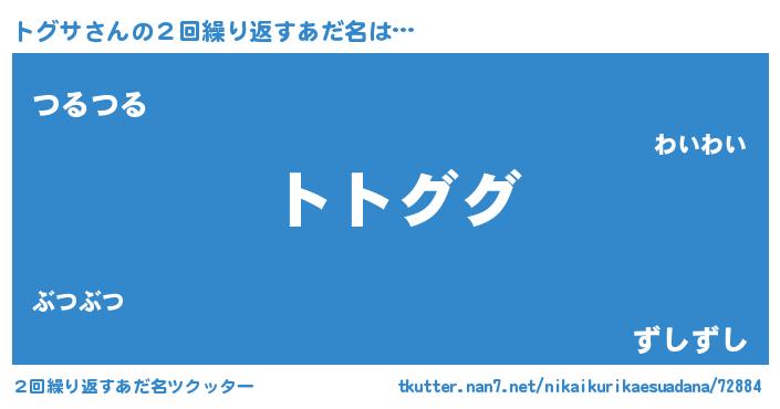 | 意味不明あだ名 | 『トグサフォーエバー』『ペロリントグサ』 |