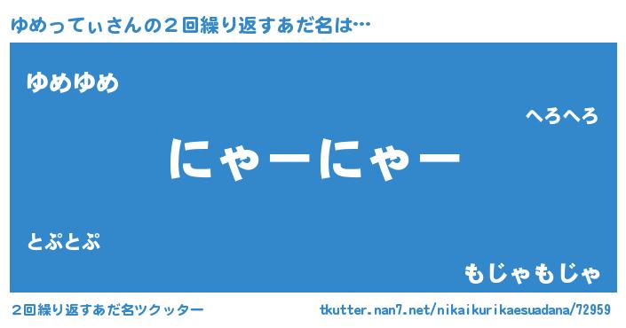 | 男性向けラノベタイトル風あだ名 | 『ゆめってぃに滅ぼされるだけの簡単なお仕事です』 |