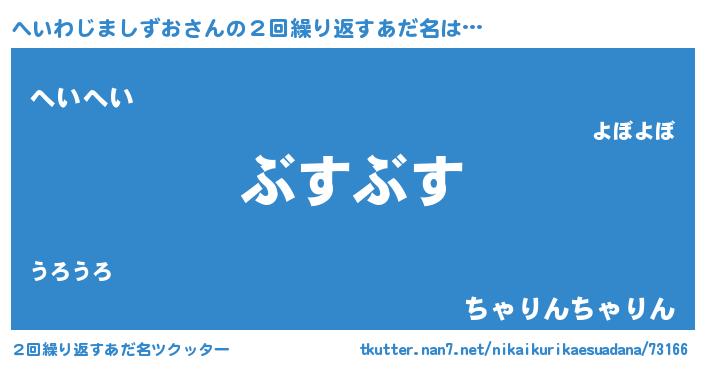 | 胡散臭い通販商品みたいなあだ名 | 『100人中100人が認めたマグネット磁石…その名も「へいわじましずお」』 |