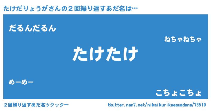 | ヘコむあだ名 | 『たけにー』『たけだりょうが(笑)』 |