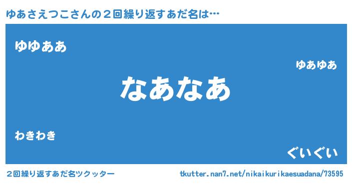 | 欧米人風あだ名 | 『ウサインゆあさえつこ』 |