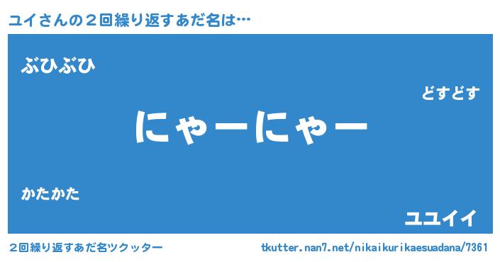 | ポケモン風あだ名 | 『ヒユイ』『ユックウザ』『ユイダネ』 |