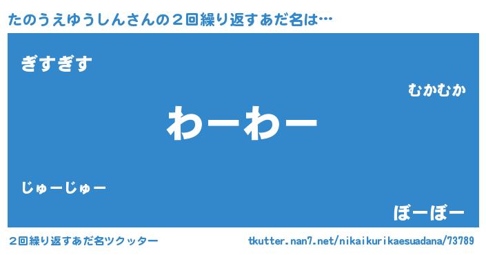 | ヘコむあだ名 | 『たのうえゆうしん(笑)』『たのお』 |
