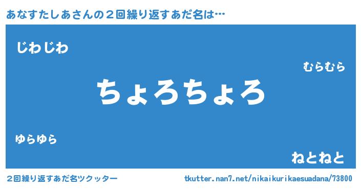 | 意味不明あだ名 | 『住所不定無職あなすたしあ(95歳)』 |