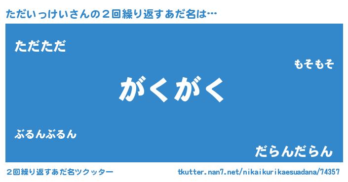 | 胡散臭い通販商品みたいなあだ名 | 『絶対に幸福をもたらす健康食品…その名も「ただいっけい」』 |