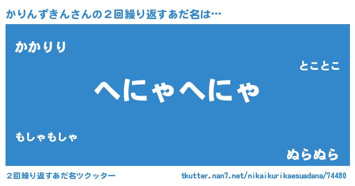 | 男性向けラノベタイトル風あだ名 | 『ノーゲーム・ノーカリンズキン』 |