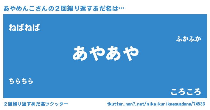 | 意味不明あだ名 | 『ペロリンあやめんこ』 |
