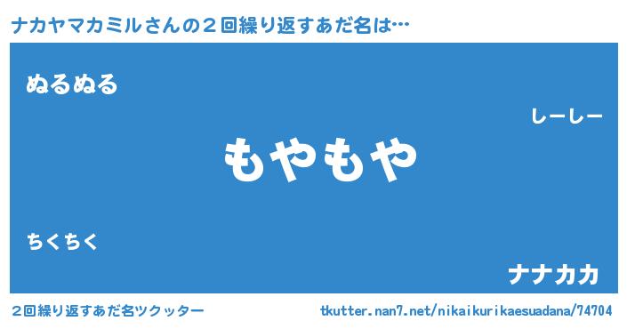 | 男性向けラノベタイトル風あだ名 | 『Re:ナカヤマカミルから始める異世界生活』 |
