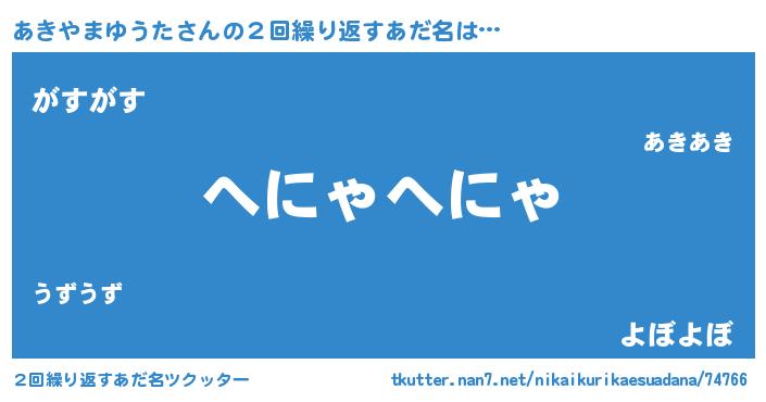 | ヘコむあだ名 | 『あきやまゆうた(遠い目)』『あきふぇ~』 |