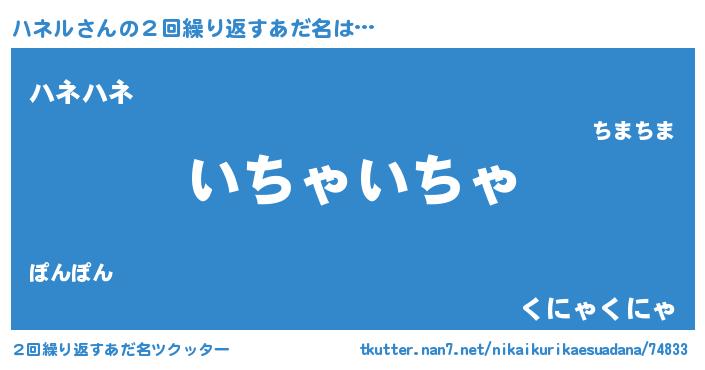 | 恥ずかしいあだ名 | 『ハネリンリン』『プリティーハネル』 |