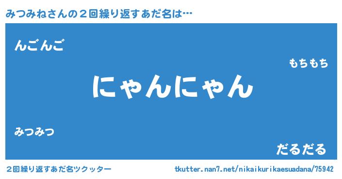 | 女子向けラノベタイトル風あだ名 | 『みつみねの卵を拾いまして』 |