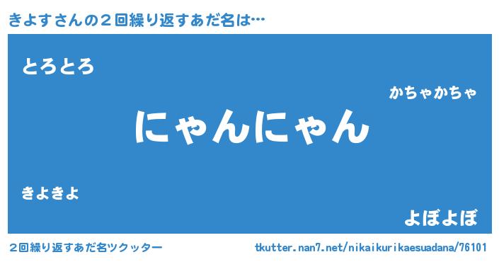 | 男性向けラノベタイトル風あだ名 | 『きよすに滅ぼされるだけの簡単なお仕事です』 |