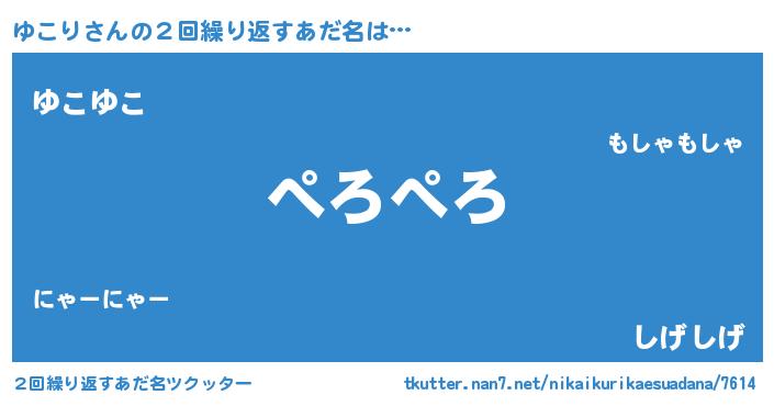 | 男性向けラノベタイトル風あだ名 | 『ゆこりに滅ぼされるだけの簡単なお仕事です』 |