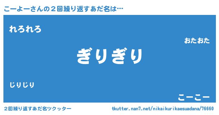 | 意味不明あだ名 | 『永久保存こーよー』『ペロリンこーよー』 |