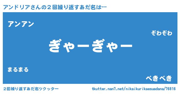 | 恥ずかしいあだ名 | 『アンちん』『プリティーアンドリア』 |