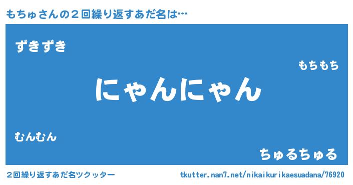 | 意味不明あだ名 | 『とにかく怪しいもちゅ』『自称もちゅ』 |