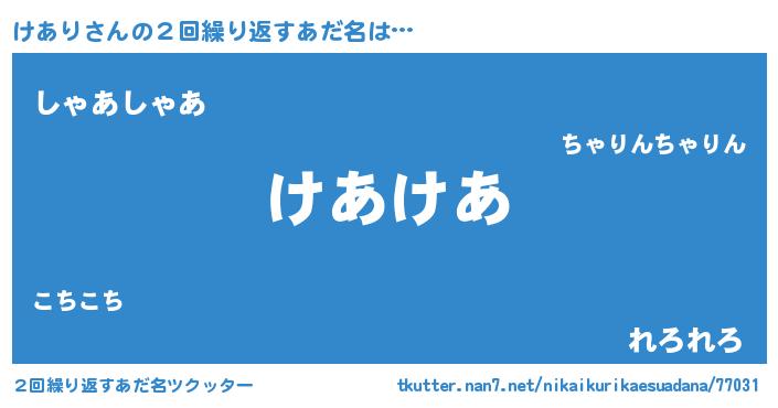 | ヘコむあだ名 | 『けあにー』『けあり(苦笑)』『豆乳』 |