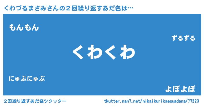 | 恥ずかしいあだ名 | 『プリティーくわづるまさみ』『くわちん』 |